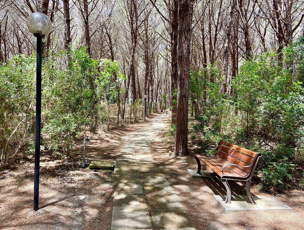 Soukromá jemná kamínková pláž s pozvolným vstupem do moře je od apartmánu vzdálená 300 m. Cesta k pláži vede borovým a eukaliptovým hájem. Na pláži se nachází sprcha a využívat můžete zdarma slunečníky a lehátka